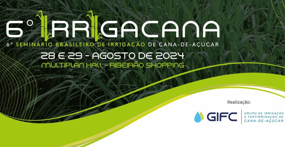 Em sua sexta edição, o Seminário Brasileiro de Irrigação e Fertirrigação de Cana-de-Açúcar (IRRIGACANA), realizado pelo GIFC (Grupo de Irrigação e Fertirrigação em Cana-de-Açúcar), reunirá representantes de unidades bioenergéticas, produtores e produtoras rurais, pesquisadores e integrantes de empresas fornecedoras do setor, para discussão e troca de informações sobre a gestão eficiente do manejo da água e da fertirrigação em canaviais, visando o aumento de produtividade agrícola e longevidade das áreas. Este ano, o seminário será realizado nos dias 28 e 29 de agosto no Multiplan Hall, do Ribeirão Shopping, espaço de eventos localizado em Ribeirão Preto/SP e considerado um dos mais modernos e inovadores do país.