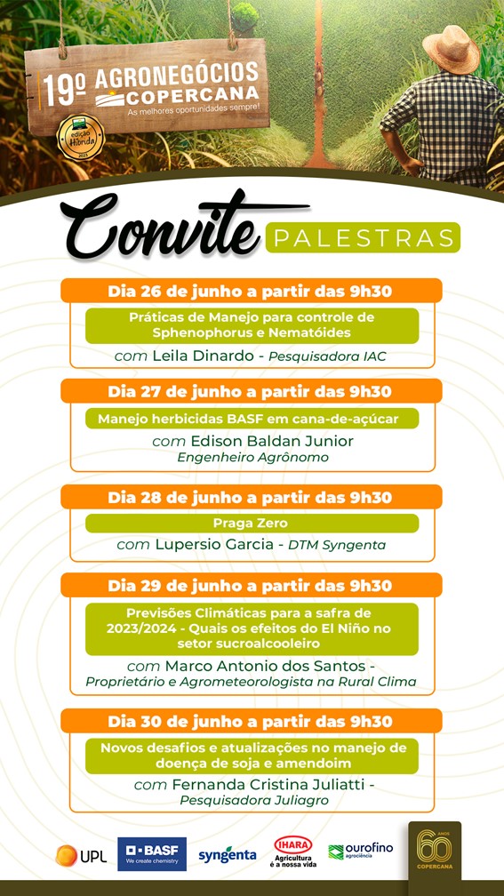 Além da exposição e vendas de produtos e serviços, o 19º Agronegócios Copercana conta com uma programação de palestras com temas de grande interesse do público canavieiro.