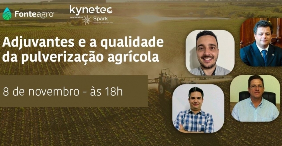 Ocorre no dia 8 de novembro (terça-feira), a partir das 18h00, com transmissão pelo YouTube, o painel “Adjuvantes e a Qualidade da Pulverização Agrícola”. O encontro, gratuito (inscrições abertas), reunirá os especialistas André Rossi, Hamilton Ramos, Maickon Balator e Paulo Bettini e tem por objetivo analisar benefícios e riscos associados a adjuvantes agrícolas. Tais produtos, em resumo, podem determinar o êxito ou o insucesso no controle de pragas, doenças e plantas daninhas nos principais cultivos.