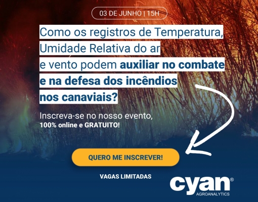 A palestra acontecerá em 3 de junho a partir das 15 horas, abordará prevenção, controle de incêndios em canaviais e questões legais. VAGAS LIMITADAS - INSCREVA-SE GRÁTIS https://materiais.cyan-agro.com/canaonline
