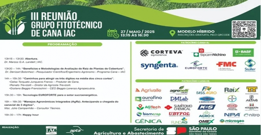 No dia 27 de MAIO, a partir das 13h15, acontecerá a 3ª Reunião do Grupo Fitotécnico IAC.