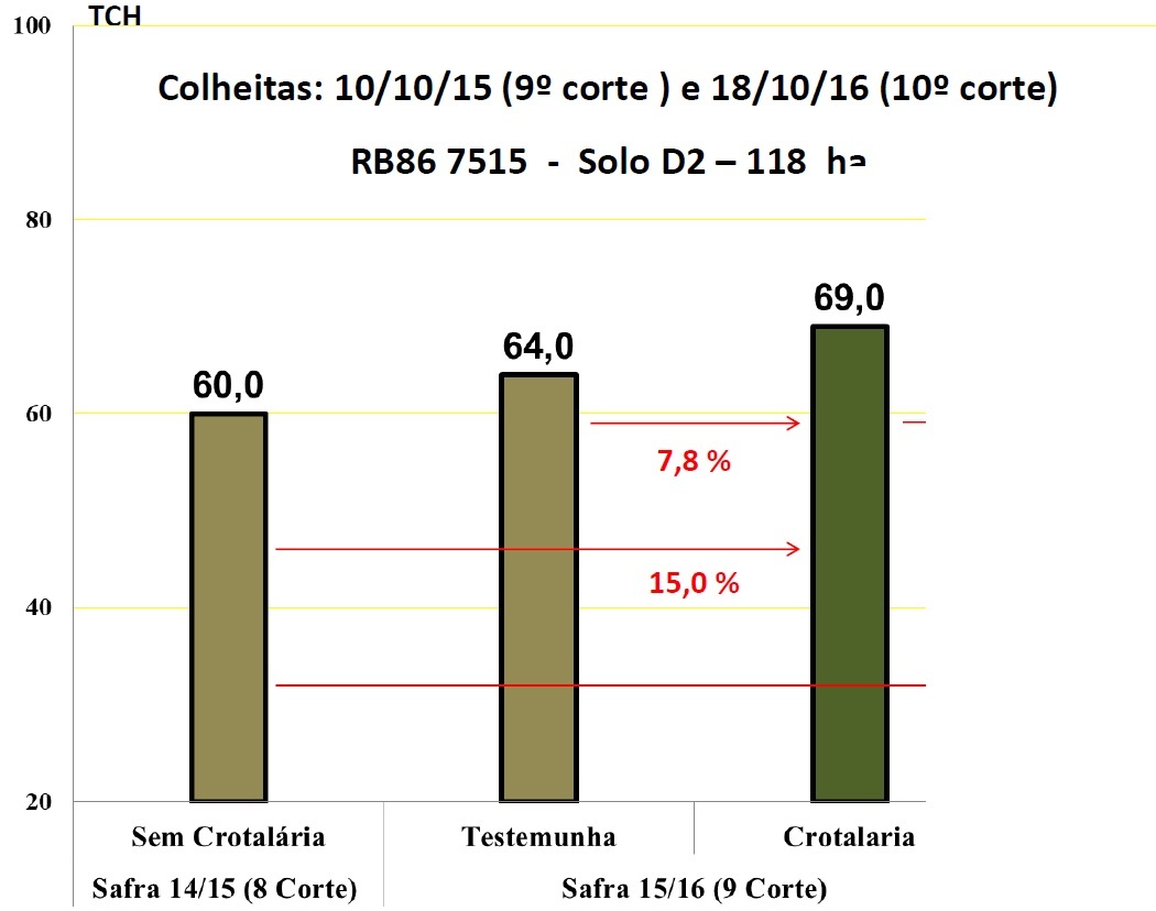 “Além de ganhos em produtividade - que podem chegar a 17% -, longevidade e teor de sacarose, essa técnica atua no controle de plantas daninhas e pragas da cana, no aporte de nitrogênio e matéria orgânica, na melhora da taxa de infiltração de água, auxilia no controle de erosão, recicla nutrientes, incrementa micorrizas no solo, prolonga a umidade no interior do talhão, incrementa a população de inimigos naturais e acelera a decomposição da palhada.”