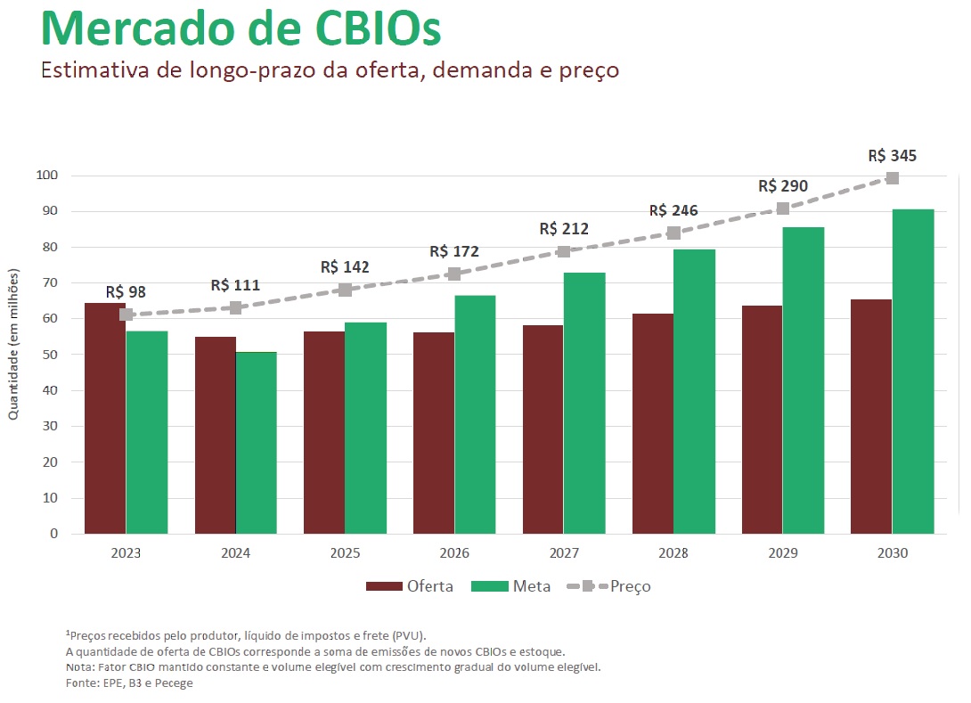 A expectativa para os próximos anos é de um mercado bastante aquecido e favorável para os emissores. No longo prazo, mesmo com o aumento do volume elegível, a emissão de CBIOs deverá permanecer aquém das metas estipuladas, o que deverá resultar em fortes elevações no seu preço. Para 2030, por exemplo, a expectativa é que cada CBIO seja comercializado a R$ 345.