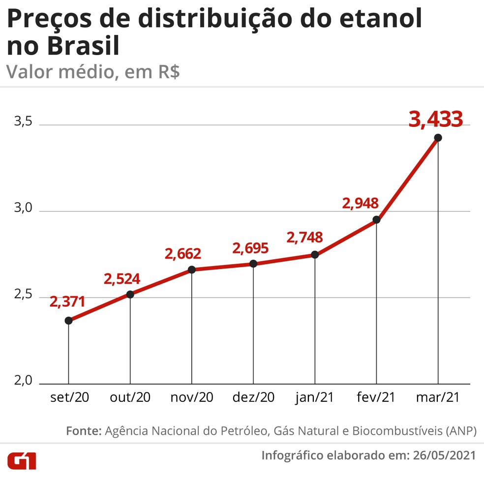 De acordo Mario Campos, presidente da Associação das Indústrias Sucroenergéticas de Minas Gerais (Siamig), os preços do etanol estão aumentando por conta da estiagem que ocorreu no verão.