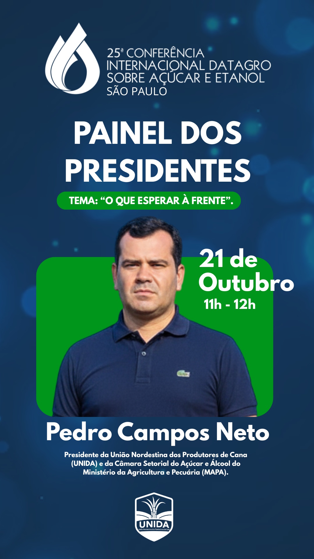 O presidente da União Nordestina dos Produtores de Cana (UNIDA) e da Câmara Setorial do Açúcar e Álcool do Ministério da Agricultura e Pecuária (MAPA) e vice-presidente da Associação dos Plantadores de Cana da Paraíba (Asplan), Pedro Campos Neto será um dos palestrantes do painel ‘O que esperar a frente’, que vai acontecer no dia 21 de outubro, dentro da programação da 25ª Conferência Internacional DATAGRO sobre Açúcar e Etanol. A edição deste ano, que acontece nos dias 20 e 21, em São Paulo, no Grand Hyatt Hotel, reúne diferentes perspectivas para olhar o presente e o futuro da cadeia sucroenergética, com espaço para conversa direta, troca de experiências e atualização técnica. Esta edição será híbrida, com participação presencial e virtual.