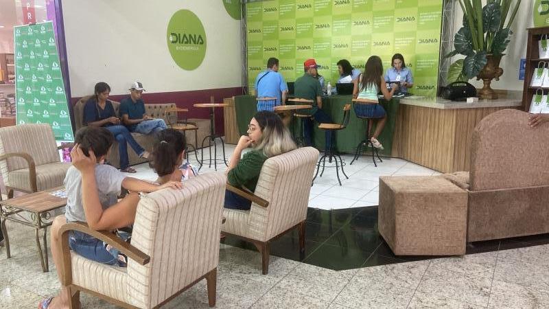 Com um estande decorado e equipe atenciosa, os representantes da Diana Bioenergia estavam prontos para receber os candidatos. Após o cadastramento os candidatos puderam desfrutar de um café da manhã preparado especialmente para eles com bolo, suco e salgadinhos, além de ganharem como brinde uma casquinha de sorvete para ajudar a matar o calor e uma sacola de brinde preparada com muito carinho. Os participantes tiveram a chance de se candidatar a vagas que são destinadas a homens, mulheres e pessoas com deficiência (PCDs).