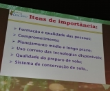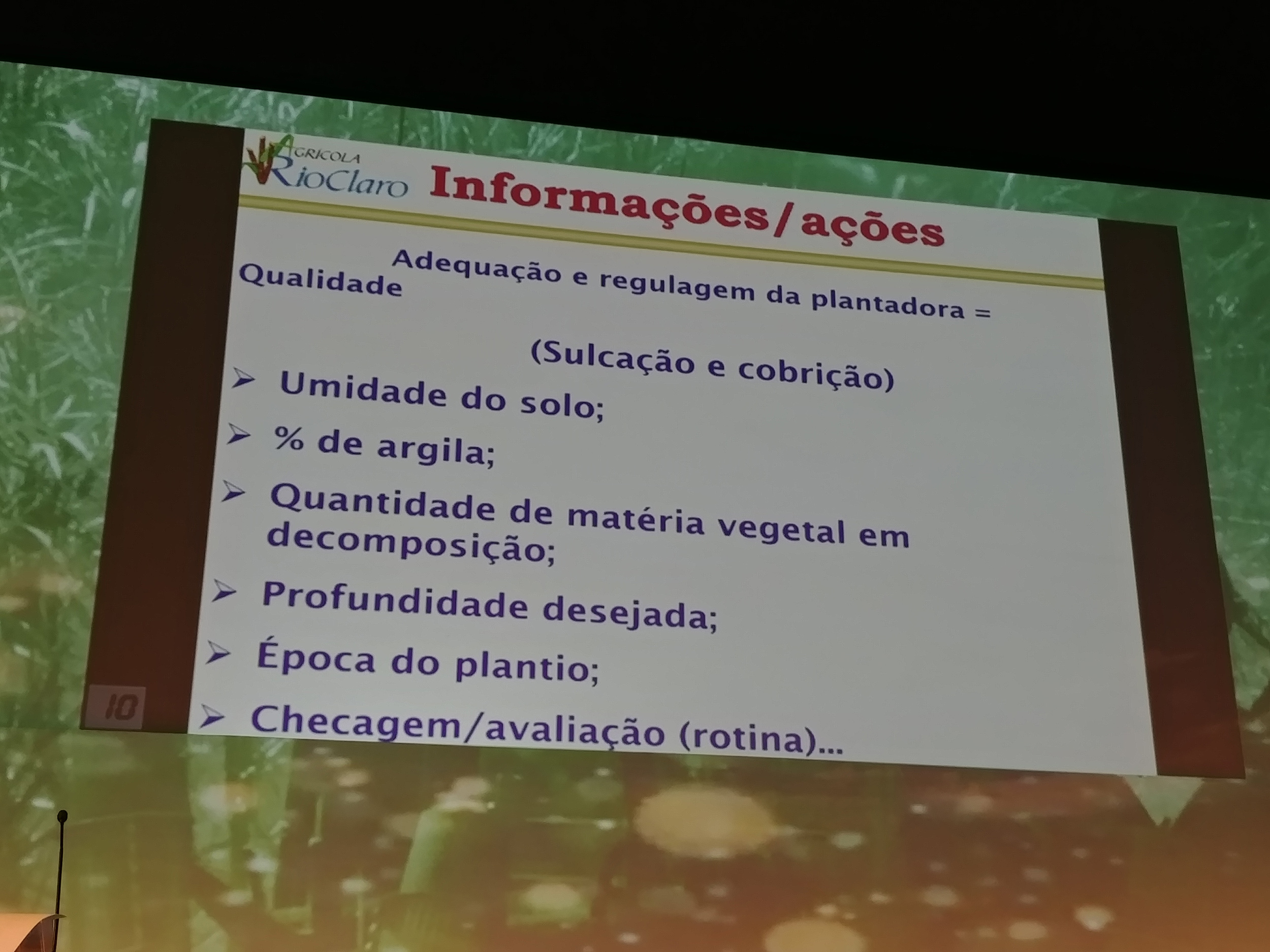 Em sua palestra “Um projeto de engenharia para plantio mecanizado de cana com qualidade”, Dalben apresentou as adaptações que fez na plantadora, como a substituição do trocador. A Rio Claro planta cerca de 500 hectares de cana por ano, tudo com máquina e com média de 10,6 toneladas de cana-muda por hectare.