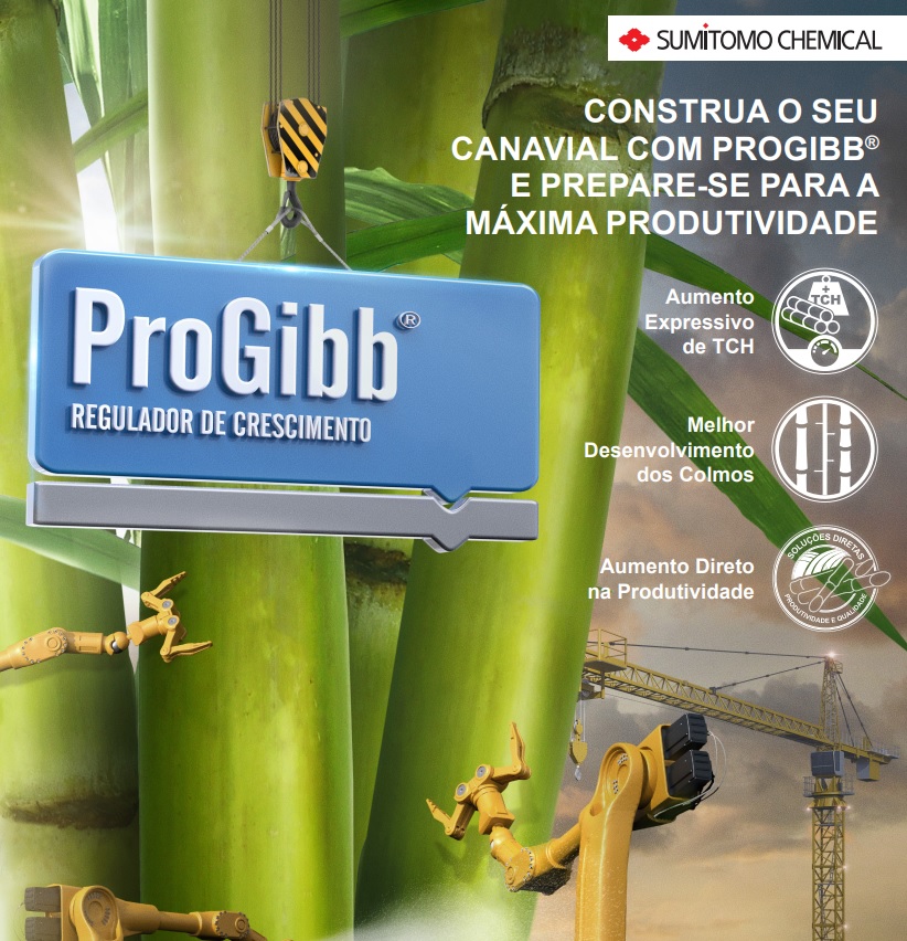 Lembrando que o ProGibb® é uma das soluções que a Sumitomo Chemical traz para o mercado dentro do programa “CANA+”, que oferece soluções para intervenção precisa e inteligente no metabolismo da cultura. Em breve, serão integradas, ainda, tecnologias para desenvolvimento e saúde de raízes, recuperação de estresses e manejo de florescimento, maturação e colheita.