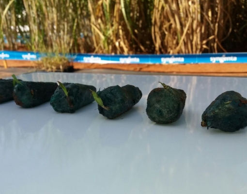 Os sortudos que conferem em primeira mão a brotação da semente artificial de cana, são produtores cooperados da Coopercitrus, Copercana, Coplacana, Coplana e Camda, que de segunda (29) a sexta-feira (2) visitam a Estação Conhecimento da Syngenta para conhecerem soluções que proporcionam um canavial muito mais produtivo e longevo e que também reforçam o caixa, como o plantio de amendoim e soja no sistema Meiosi com muda de cana pré-brotada MPB.