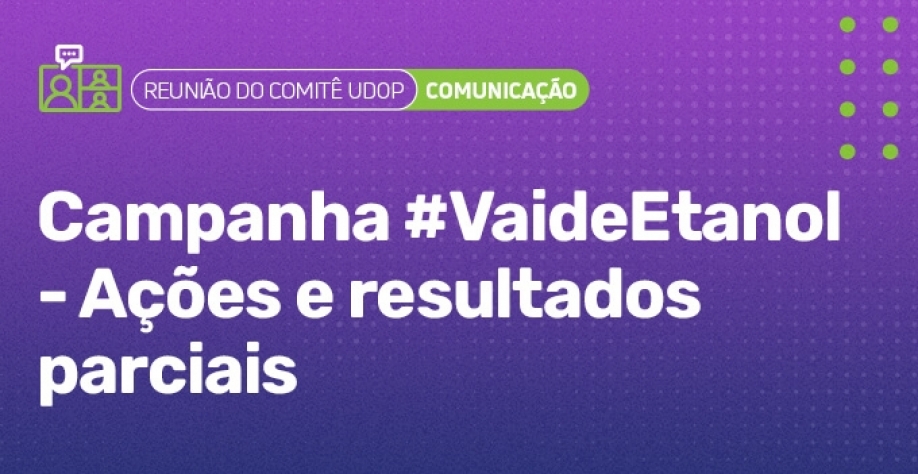 A Campanha #VaideEtanol encabeçada desde meados de janeiro pela Unica – União da Indústria de Cana-de-açúcar e Bioenergia e apoiada pelas principais entidades do setor sucroenergético, como a UDOP, a Bioenergia Brasil e demais representantes dos estados produtores do Brasil, será discutida durante a Reunião do Comitê UDOP de Comunicação na próxima sexta-feira (23), às 10 horas. A reunião será aberta aos profissionais de comunicação de unidades produtoras sócias ou não sócias da UDOP e de entidades parceiras.