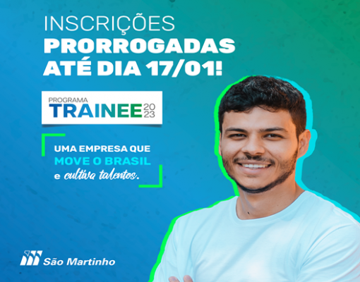 Já tá sabendo da novidade? As inscrições do Programa Trainee São Martinho foram prorrogadas! Essa é a sua oportunidade de participar de um programa diferente, com foco na sua carreira, que faz você crescer e dá visibilidade para toda a companhia!