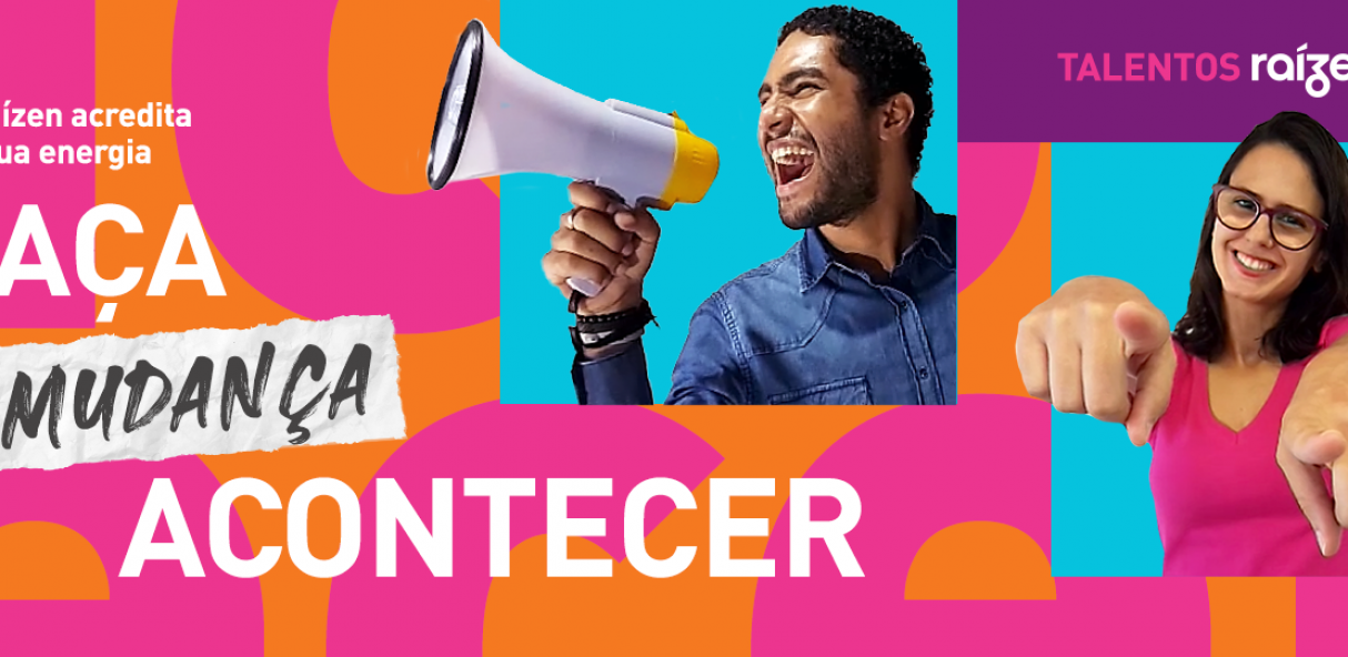 Com o mote "Faça Acontecer", o programa Talentos Raízen 2021 está conectado com sua cultura de quem trabalha com a atitude, inovação e olhar para o futuro, sempre querendo fazer a mudança acontecer. A campanha apresenta um shooting online feito por videoconferência com estagiárias, estagiários e aprendizes aprovados em edições anteriores do programa, interligando pessoas de várias regiões do Brasil sem que elas tivessem que se deslocar até um estúdio. Ao longo do período de inscrições, a Raízen ainda promoverá ativações pelo Instagram, onde serão abertas caixas de perguntas para que os candidatas e as candidatos tirem suas dúvidas sobre o programa.