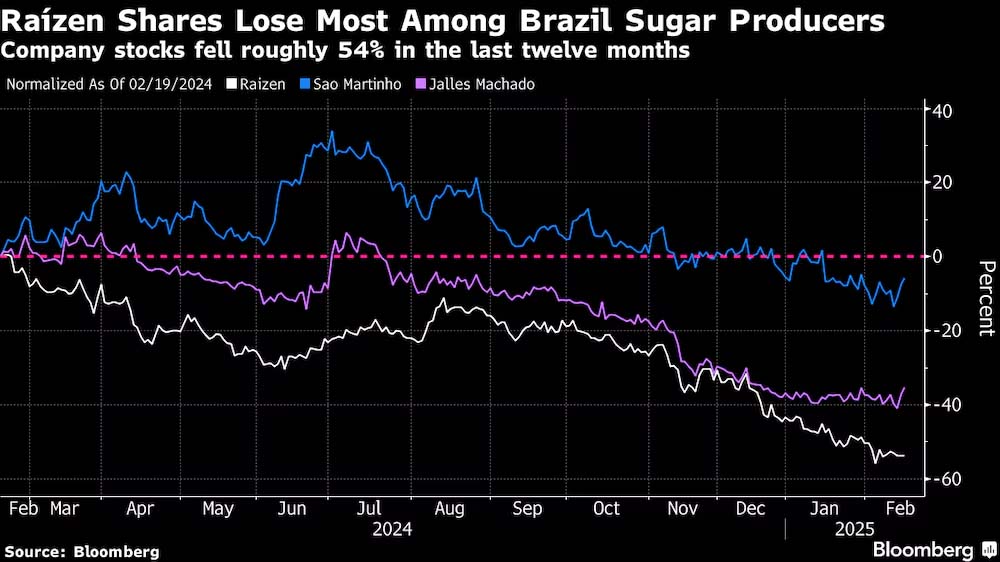 As ações da Raizen recuaram cerca de 54% no último ano.