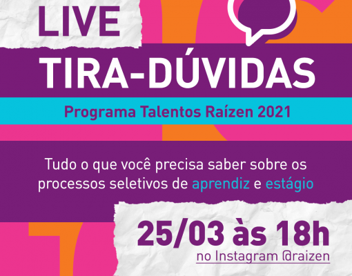 A tem como objetivo apresentar as formas de atuação da Raízen e explorar como funciona o processo seletivo da companhia, além de criar um diálogo transparente com candidatos e candidatas do programa Talentos Raízen 2021, que traz 770 oportunidades de estágio e aprendiz por todo o Brasil, com inscrições abertas pelo site raizen.com.br/talentosaté o dia 7 de abril.