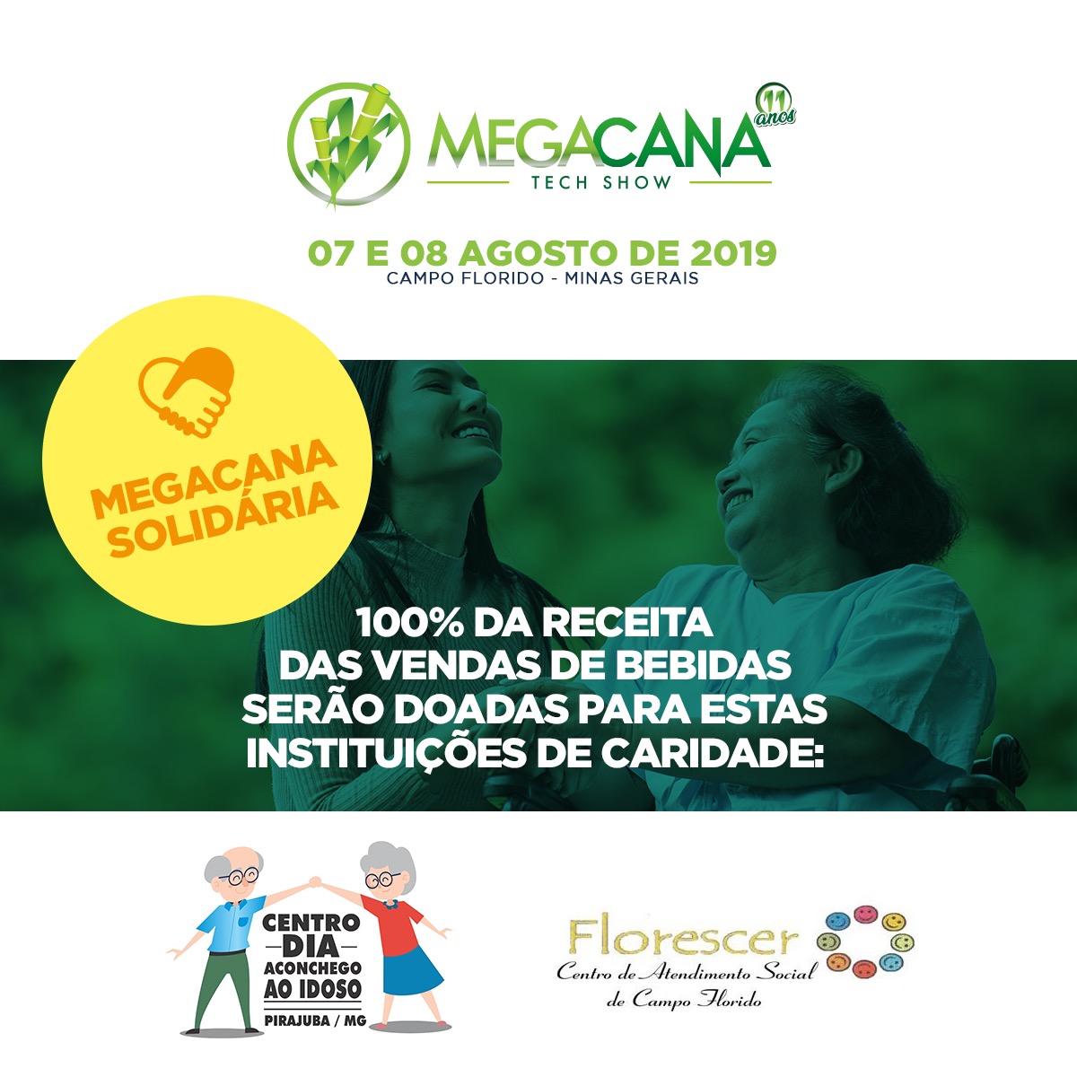 Ajudar ao próximo também é um dos objetivos da Megacana Tech Show 2019, que será realizado nos dias 7 e 8 de agosto em Campo Florido, no Triângulo Mineiro. Em uma ação solidária, este ano, com o Centro Dia Aconchego ao Idoso de Pirajuba/MG e Florescer - Centro de Atendimento Social de Campo Florido, toda renda da venda de bebidas (cerveja, refrigerante e água) será 100% destinadas a estas instituições.