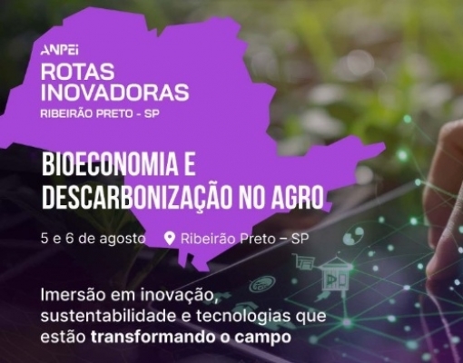 Nos dias 5 e 6 de agosto, Ribeirão Preto - SP será palco da próxima edição da Rotas Inovadoras ANPEI (Associação Nacional de Pesquisa e Desenvolvimento das Empresas Inovadoras) – Bioeconomia e Agro, uma jornada de dois dias voltada à inovação no campo, com destaque para bioeconomia, descarbonização e desenvolvimento sustentável.
