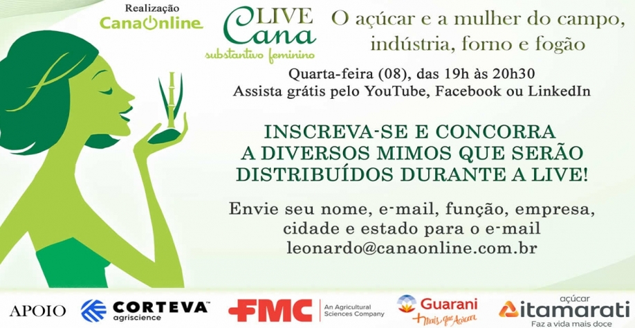 O acesso a live é grátis, mas quem quiser concorrer aos “mimos” que serão distribuídos durante a live, precisa se inscrever. Basta enviar um e-mail para leonardo@canaonline.com.br , com as informações: Nome, função, empresa, cidade e estado. E acompanhar a live, só receberão os prêmios quem se manifestar na hora que seus nomes forem apresentados.