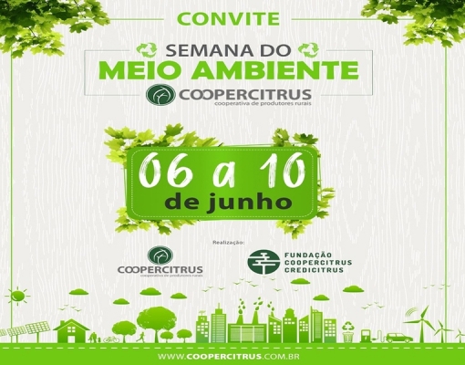 Em comemoração ao Dia Mundial do Meio Ambiente, instituído em 5 de junho pela ONU (Organização das Nações Unidas), a Coopercitrus -- Cooperativa de Produtores Rurais, realiza, de 6 a 10 de junho, a Semana do Meio Ambiente, contando com uma programação variada com objetivo de promover a atualização de produtores rurais sobre temas relevantes para o agro, além de envolver a comunidade em vivências voltadas às práticas ambientais.