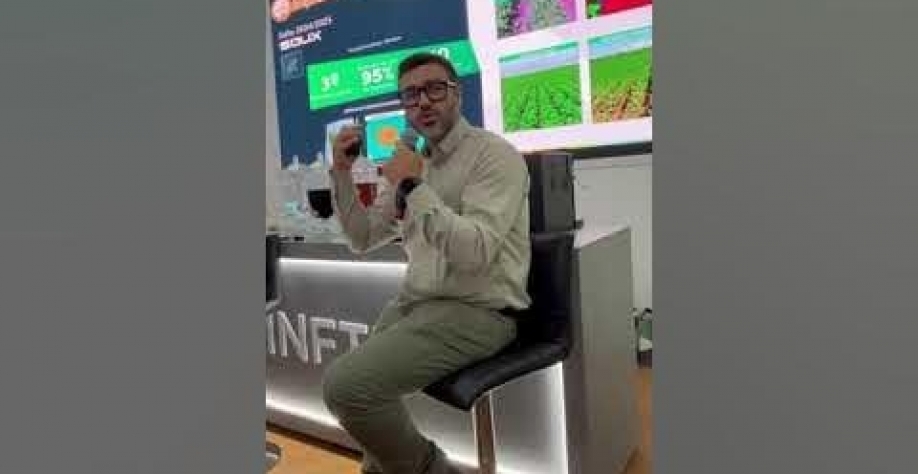 Bruno Pavão, Chefe de Operações de Robótica da Solinftec, compartilhou os impactos positivos das tecnologias da empresa nas safras de soja, milho e cana-de-açúcar para os jornalistas, no estande da empresa, na Agrishow 2025.