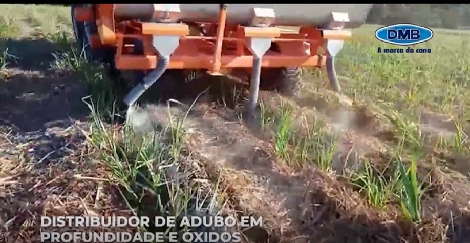 Para que os nutrientes do óxido sejam absorvidos pela planta, de maneira satisfatória, é necessário utilizar uma tecnologia eficiente de aplicação para que não ocorra desperdício desse insumo. Com essa preocupação, a Engenharia da DMB – após a realização de um trabalho minucioso – desenvolveu um sistema que viabiliza a aplicação do óxido na linha de cana de maneira regular e constante, sem falhas. A empresa incorporou essa tecnologia inovadora ao “Distribuidor de Adubo em Profundidade e Óxido Superficial”, que aplica óxido em superfície e simultaneamente enterra o adubo em três linhas de cana.