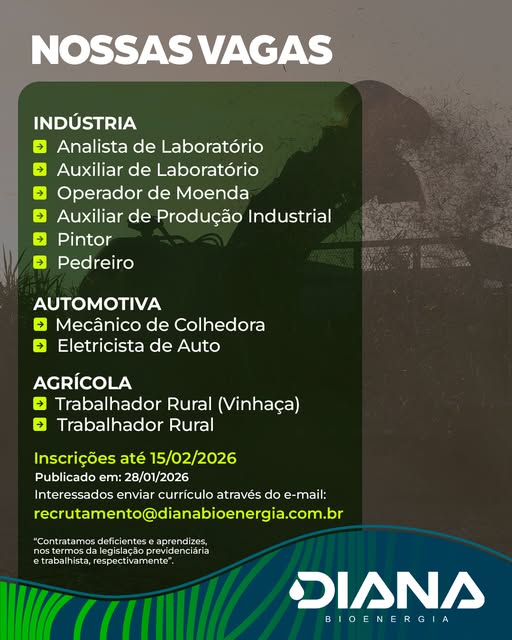 #dianabioenergia #usinadianabioenergia #vagadeemprego #avanhandava #penapolis