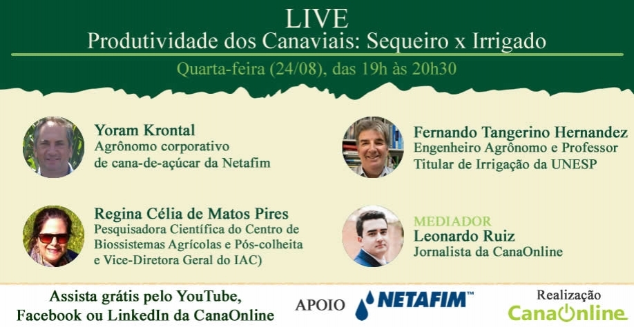 Veja os links para acompanhar a Live: Produtividade dos Canaviais: Sequeiro x Irrigado