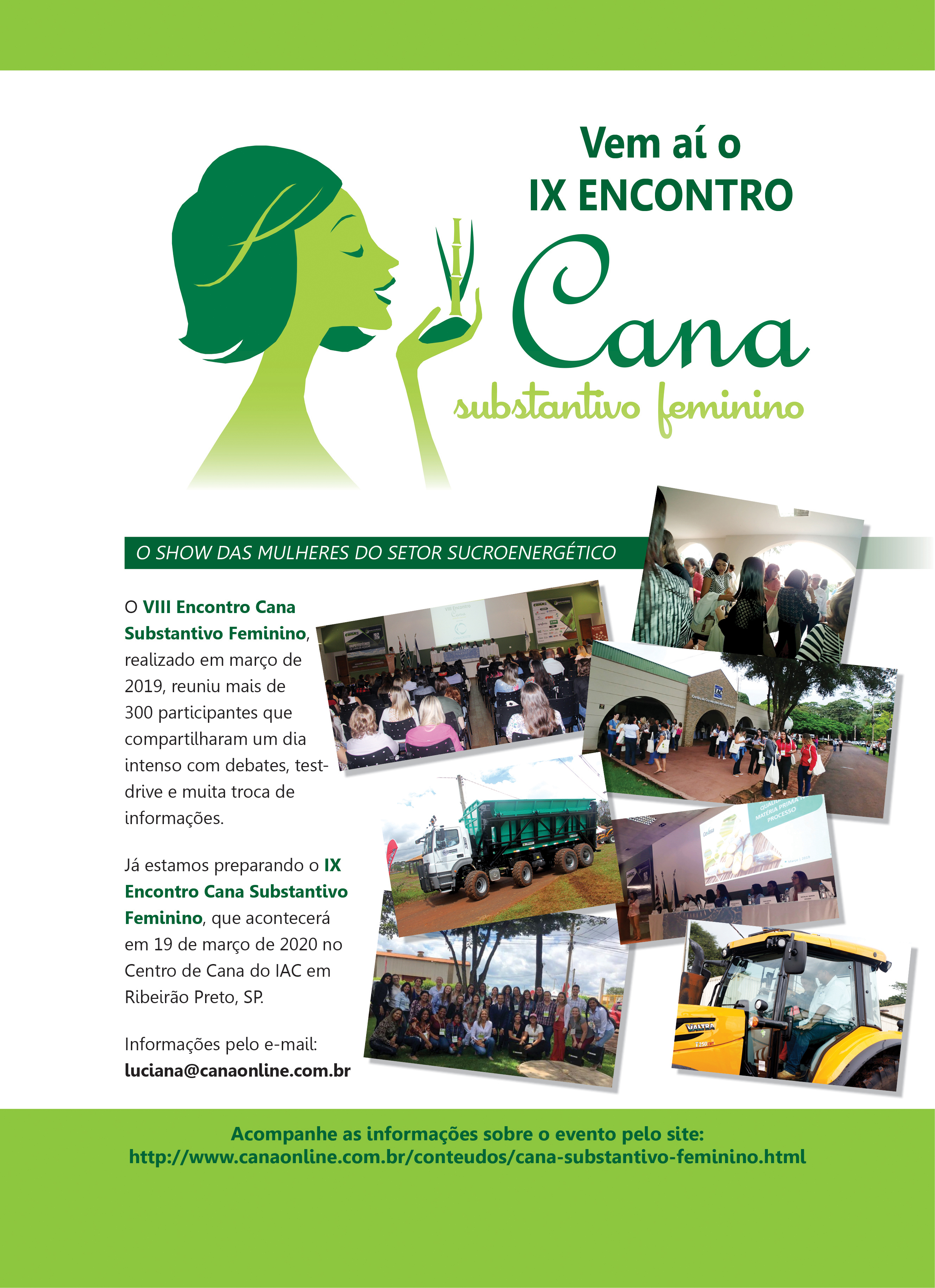 Home > Cana Substantivo Feminino > O Encontro > IX Encontro Cana Substantivo Feminino O que é VIII Encontro Cana SF VII Encontro Cana SF VI Encontro Cana SF V Encontro Cana SF IX Encontro Cana Substantivo Feminino Edições do Encontro Compartilhe: Vem aí o IX encontro Cana substantivo Feminino 12-11-2019 Mulheres avançam mas ainda são poucas no setor sucroenergético Luciane de Moraes irá operar o caminhão com direção autônoma no Encontro Cana Substantivo Feminino O ENCONTRO CANA SUBSTANTIVO FEMININO O perfil demográfico dos colaboradores da maior empresa sucroenergética do Brasil A agrícola e a indústria devem trabalhar juntas