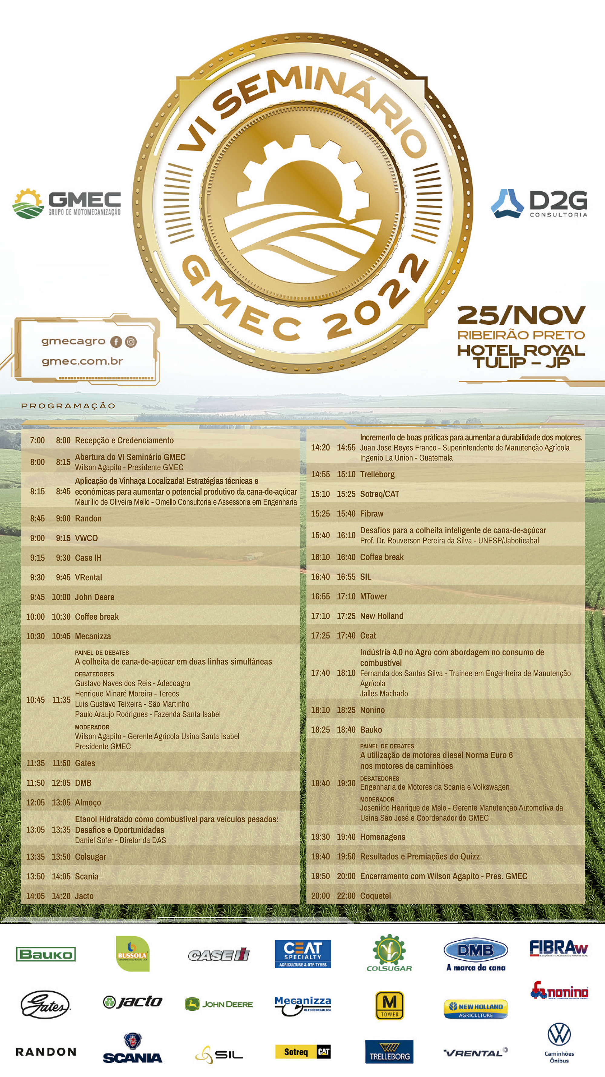 A mecanização dos canaviais é o destaque no VI Seminário GMEC 2022, que acontecerá em 25 de novembro em Ribeirão Preto, SP. Entre os temas que serão debatidos estão: